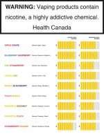WARNING: Vaping products contain nicotine, a highly addictive chemical. - Health Canada